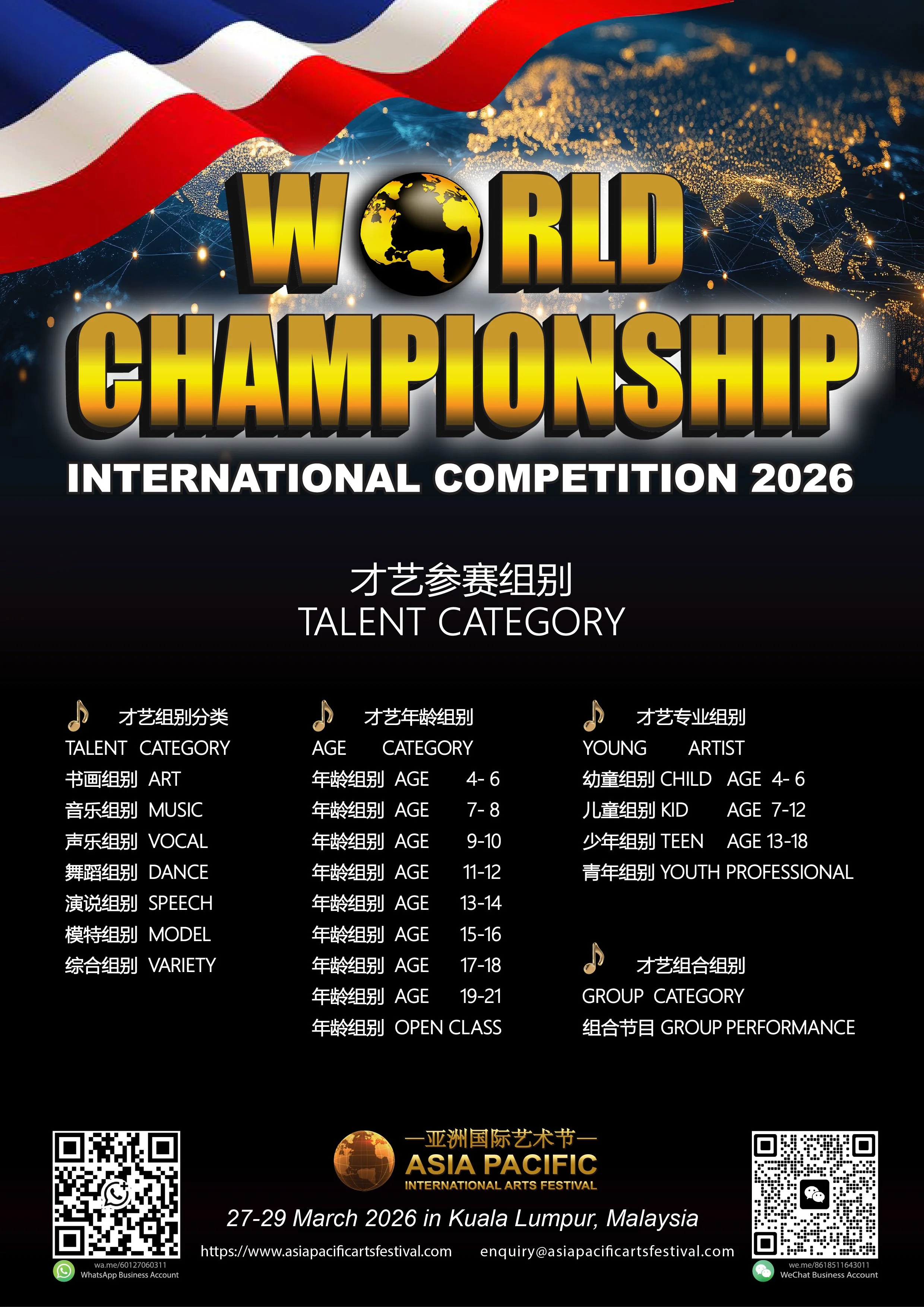 年龄组别 OPEN CLASS才艺专业组别 YOUNG ARTIST