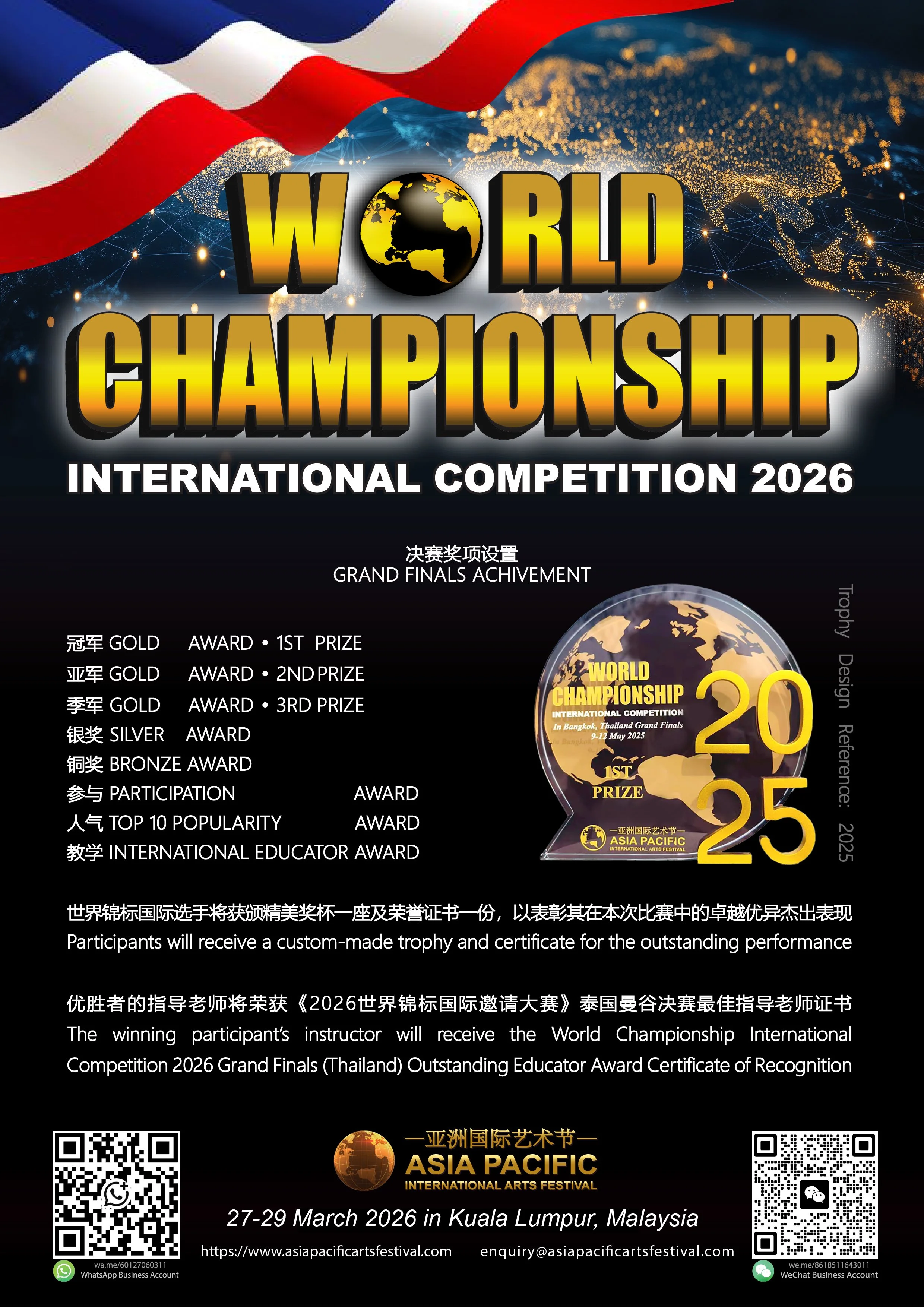 International Certificate & Trophy优胜者将会荣获现金奖励,精美奖杯和荣誉证书